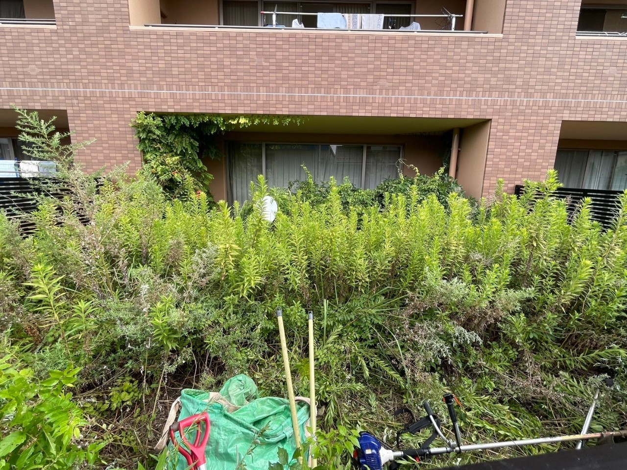 福岡県 直方市 にて、伸び放題だった雑草の除草作業を行いました!