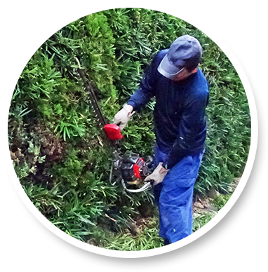剪定や刈込後、切った枝を必ず消毒します。消毒をする理由として、切り口をそのままにしておくと、雨水などが切り口から入り腐ってしまう恐れがあるためです。お客様の大切な植栽です。元気に育つよう、消毒もきっちり行います。